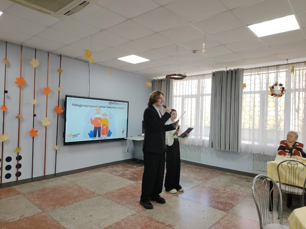 В коворкинг центре колледжа состоялось праздничное чаепитие и концерт, подготовленный студентами и преподавателями ГАПОУ СМПК. Директор Антонина Никифоровна Усевич поздравила гостей, пожелала крепкого здоровья и долгих лет жизни, а также вручила материальную помощь. С теплыми словами поздравлений выступили заместитель директора по воспитательной работе Муратшин Евгений Зуфарович, председатель Профсоюза Василий Анатольевич Тихонов.